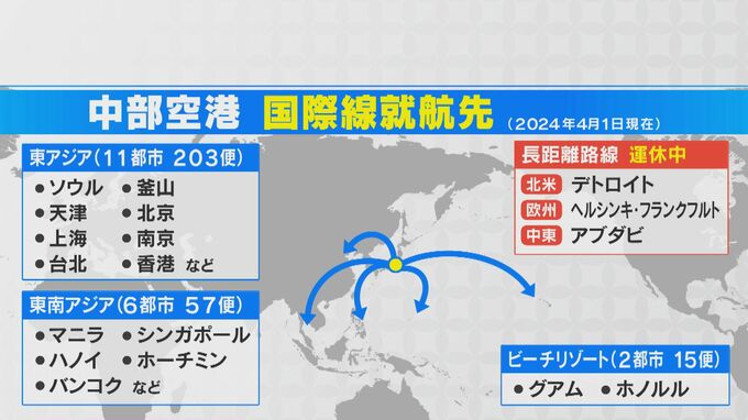 これに加えて、コロナ禍明けにいち早く東京・大阪の空港から国際線の運航が再開しましたが、アメリカやヨーロッパへの直行便がほとんどない中部空港からは利用者は遠ざかったまま。