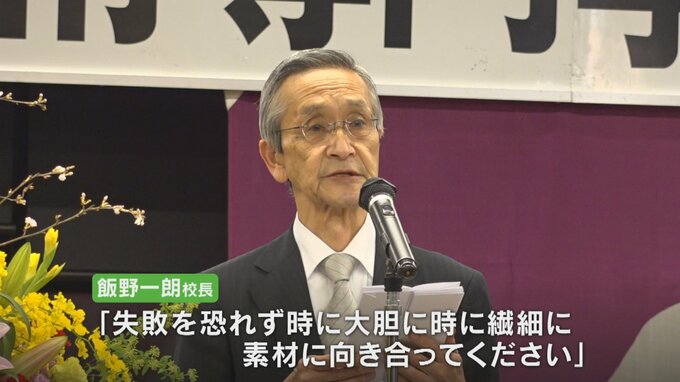 入学式では、飯野一朗校長が「失敗を恐れず時に大胆に時に繊細に素材に向き合ってください」と激励しました。