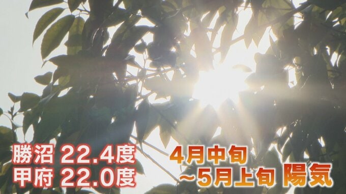 最高気温は勝沼が22.4℃、甲府が22℃などと各地で4月中旬から5月上旬の陽気になりました。