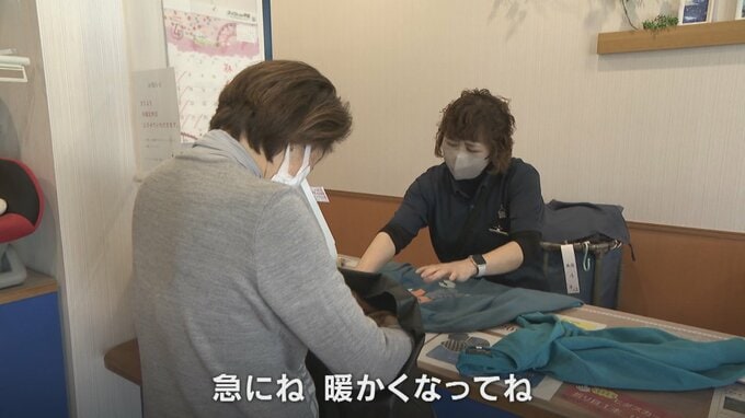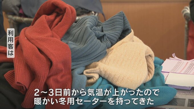 3月30日、本店には厚手のダウンなどを中心に、普段の約4倍にあたる1200点余りの衣類が持ち込まれたということです。