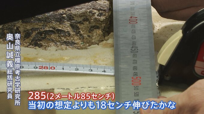 鞘尻の先の石突の新発見などにより、装具を含む剣全体の長さが実に2メートル85センチにものぼることが確認された。