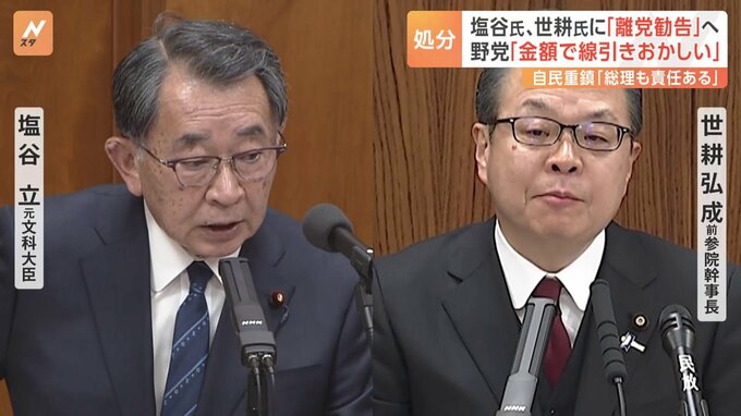 派閥の裏金事件を受け、自民党は安倍派の塩谷元文科大臣と世耕前参院幹事長を「離党勧告」とするなど、39人の処分方針について詰めの協議に入りました。記者「岸田総理がこれから、自民党の幹部らとの会合に臨みま…