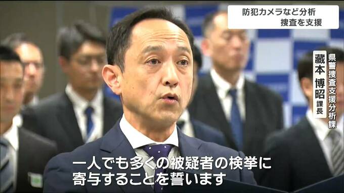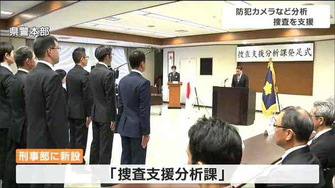 「捜査支援分析課」は県警刑事部に新設され、発足式では原幸太郎本部長が「高度な情報分析で検挙に一歩でも近づいてほしい」と訓示しました。捜査支援分析課は情報支援分析室を「課」に格上げしたもので、これまでの10人の2倍以上となる24人が配属されました。