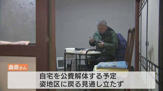 自宅は公費で解体される予定ですが、高齢なうえ、年金暮らしで経済的に余裕がなく、大きな借金をして、姿地区に新しく自宅を構える見通しは立っていません。