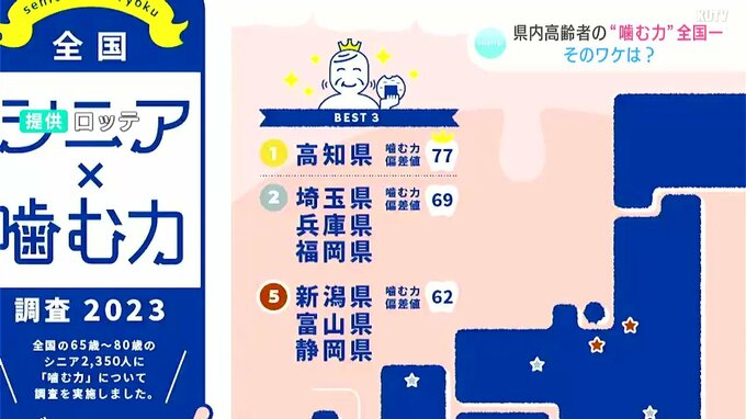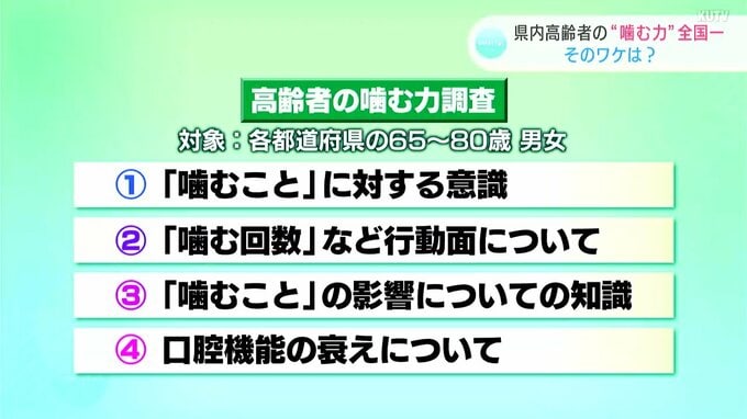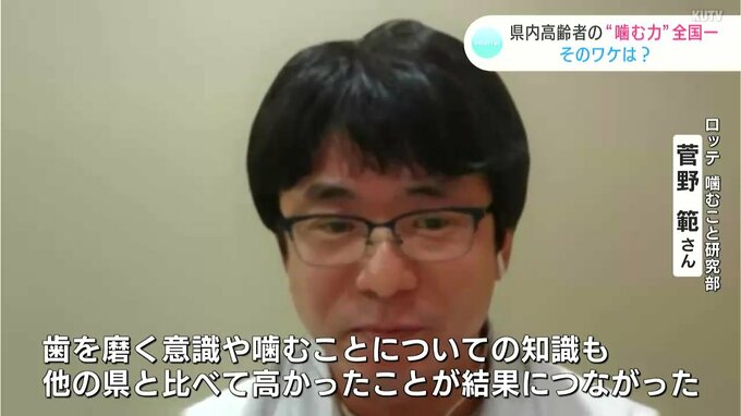 「噛む力や免疫機能、口のうるおいというのが良好に保たれていた人が多かったというのと、歯を磨く意識や噛むことについての知識も、ほかの県と比べて高かったことが1位という結果につながった」