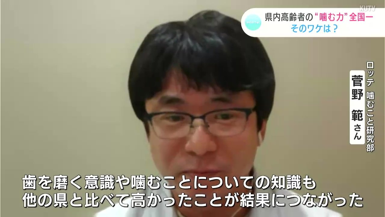 「噛む力や免疫機能、口のうるおいというのが良好に保たれていた人が多かったというのと、歯を磨く意識や噛むことについての知識も、ほかの県と比べて高かったことが1位という結果につながった」