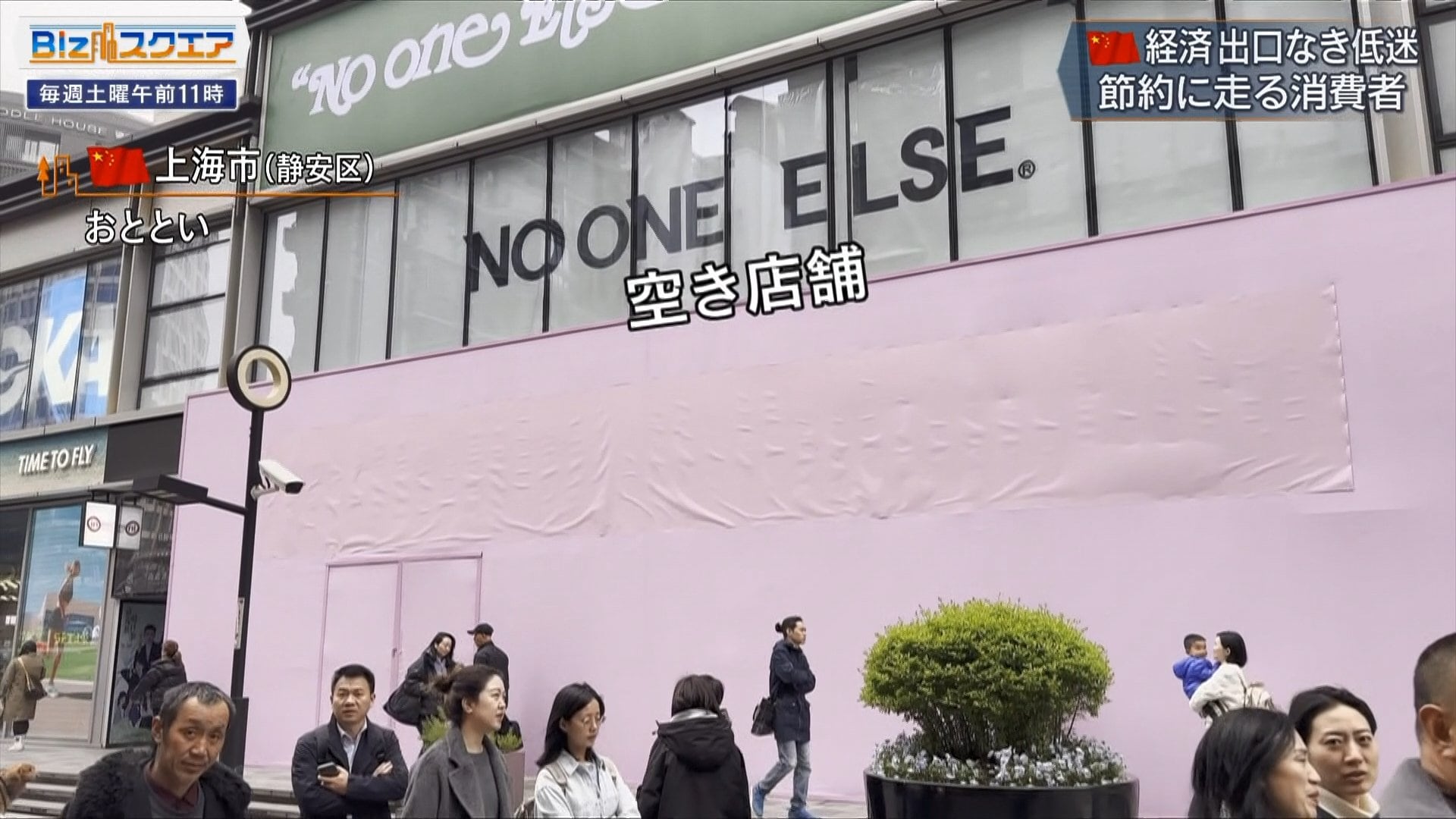 日系百貨店やブランドショップが立ち並ぶ上海中心部。メイン通りに面した商業ビルでも、テナントの空きが目立つ。