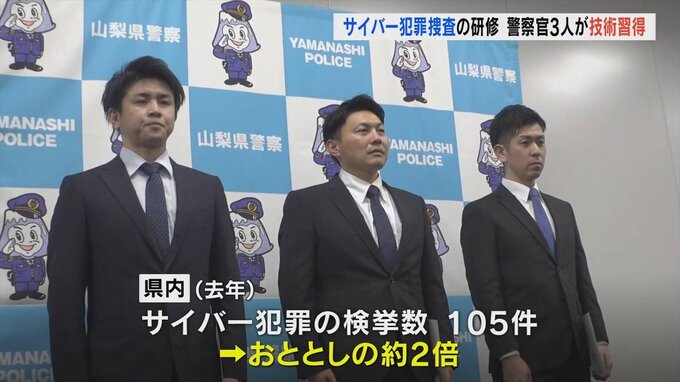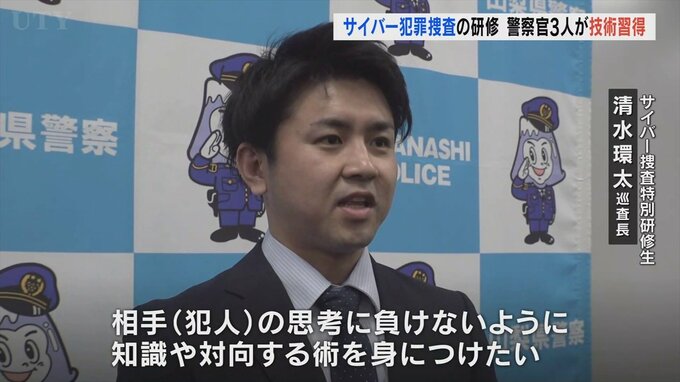 山梨県警からサイバー捜査特別研修生に指名されたのは刑事企画課の清水環太巡査長31歳ら3人です。
