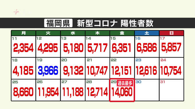 新型コロナウイルスについて福岡県は29日、新たに1万4060人の陽性を発表しました。過去最多を2日連続で更新しています。発表自治体別の内訳は、福岡市が4532人、北九州市が2482人、久留米市が…
