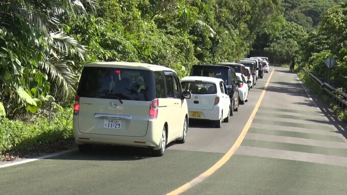 高台に向かう車の長い列ができました。