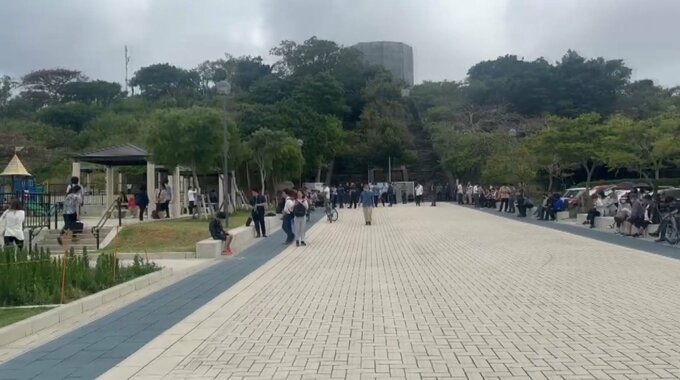 「那覇市の津波避難ビルです。警報が発表されてから多くの方がこちらに避難しています」