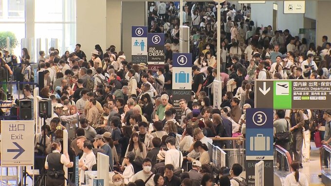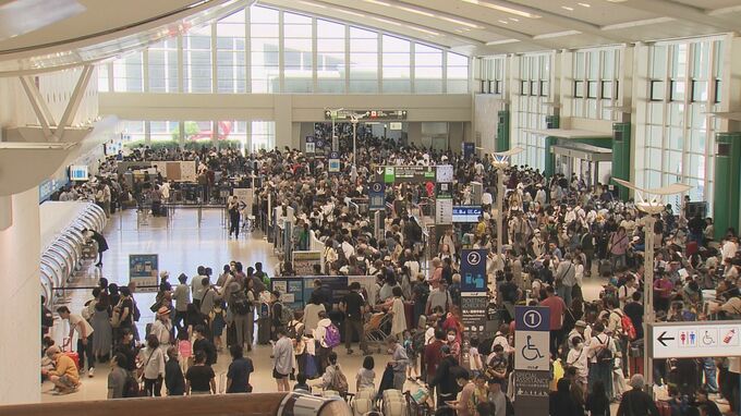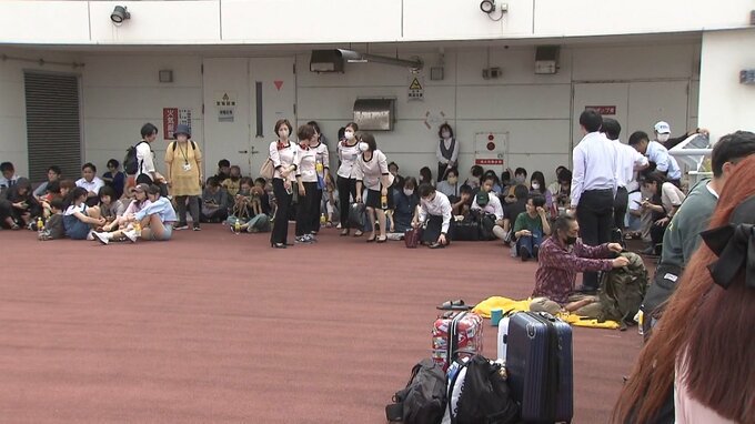 便の欠航や遅延が相次ぎ、振替手続きをしようとする観光客らが長蛇の列をつくるなど混乱する様子がみられました。