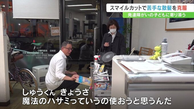 自宅がある山梨県南アルプス市から片道40分以上かけてやってきたしゅうさんは、散髪用の椅子に座ることはありませんでした。