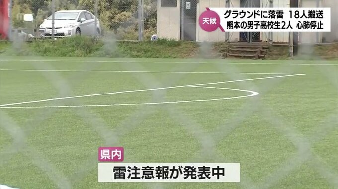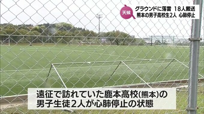 当時、グラウンドではサッカー部の練習試合が行われていて、遠征で訪れていた熊本県の鹿本高校の男子生徒2人が当初 心肺停止と伝えられていましたが、消防によりますと現在、意識不明の状態だということです。