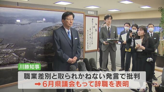 静岡県の川勝知事は新入職員への訓示で職業差別とも取られかねない発言で批判を浴び、4月2日、6月県議会をもって辞職すると表明しました。