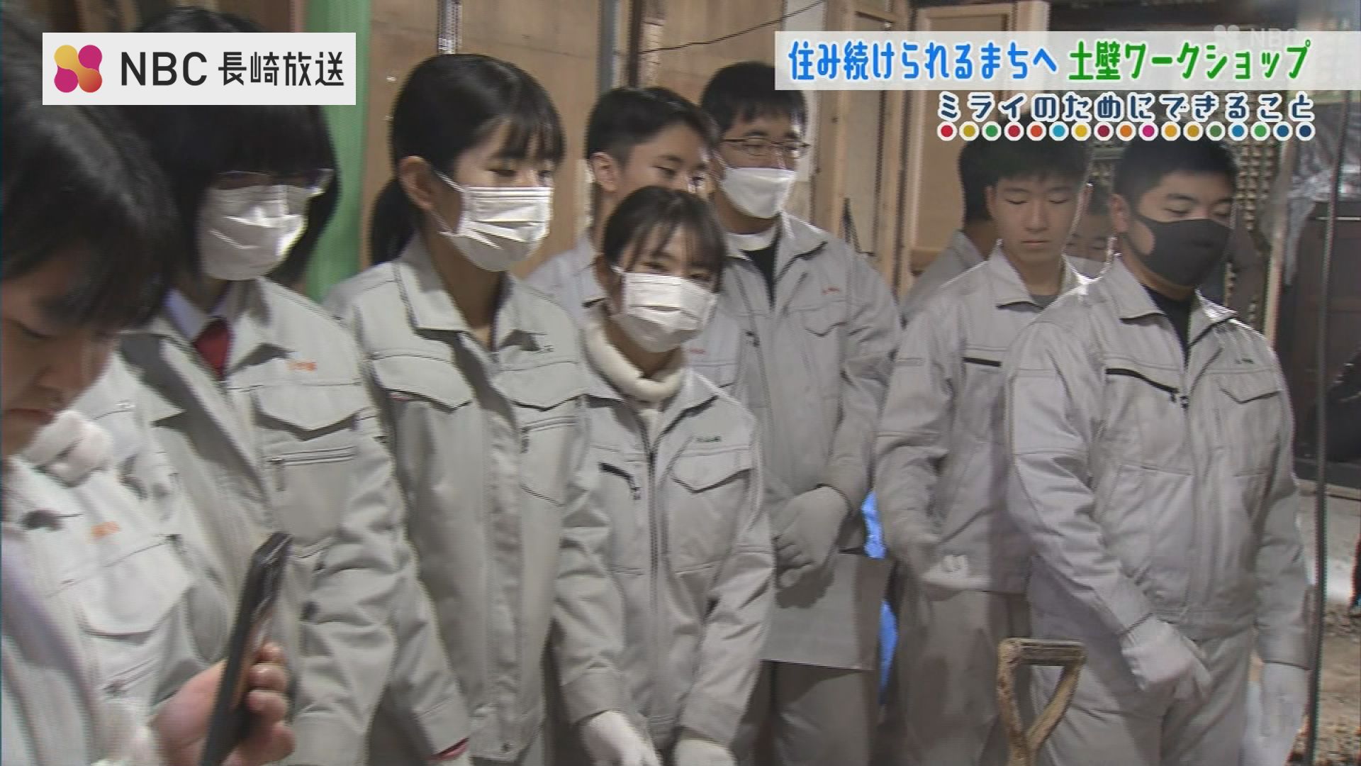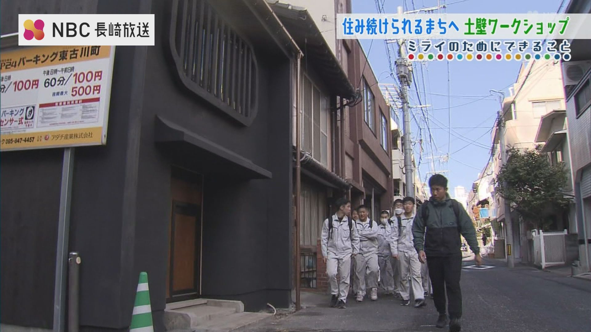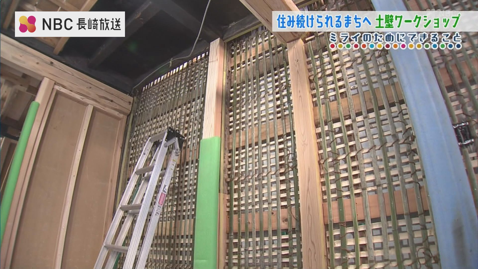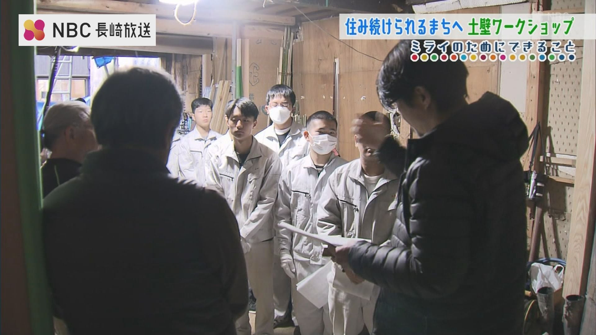 訪ねてきたのは長崎工業高校の建築科の生徒たち。この町家を新たな建物として大改修するのに合わせ、伝統構法を伝えるためのワークショップが開かれました。