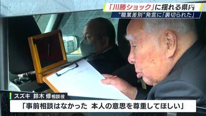 2009年の初当選以来、川勝知事を支えてきた経済界の重鎮、スズキの鈴木修相談役は「事前相談はなかった。本人の意思を尊重してほしい」と語りました。