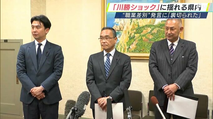 「(差別的発言の)対応を協議しようと思っていた矢先でしたので、非常に驚いています。(知事選の候補者擁立は)去年から準備のための会合は進めてきたので、まずは加速化するということ」
