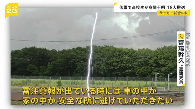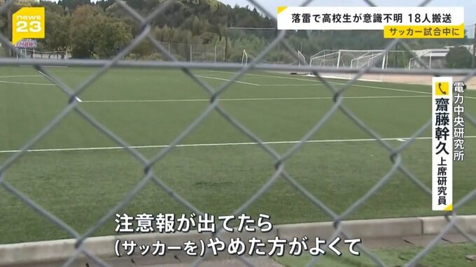 「注意報が出てたら(サッカーを)やめた方がよくて、サッカー場みたいな開けた場所だと、人に落ちるということが発生します。空中から落ちてくる部分と地面から伝って流れる電流もあって、そちらの方でけがをする方もいる」