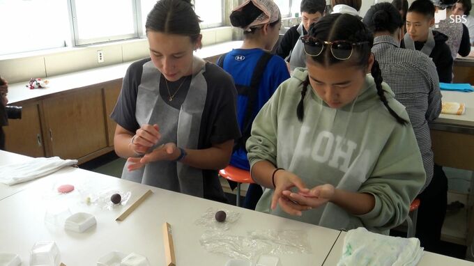 この交流は、日本の伝統文化を海外の若者に知ってもらうのが目的で、地元の和菓子屋の指導のもと練り切り作りに挑戦しました。