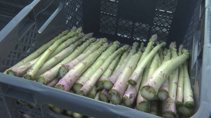 福島県会津若松市では、春の味覚・アスパラガスの収穫が始まりました。今年は、例年以上に太くてみずみずしい出来だということです。いま旬の春野菜「アスパラガス」。会津若松市にある久田純一さんの農園では、収…
