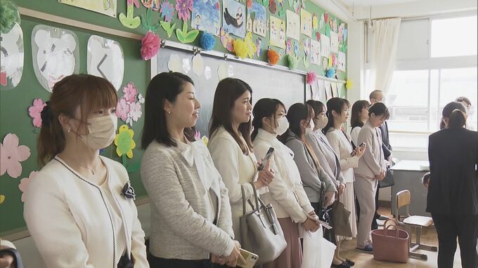 これまで教室で顔合わせをする際は、密を避けるため保護者は別室に待機していましたが、ことしは保護者が見守る中で行われました。