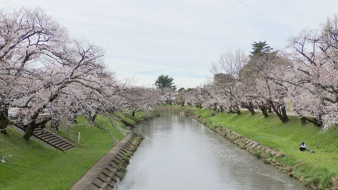 各務原市を流れる新境川の両岸には、1000本以上のサクラが咲き誇っています。