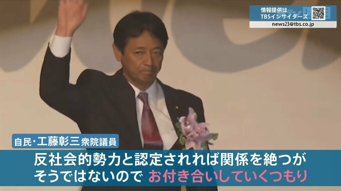 同じく選挙応援を受けていた自民党の工藤彰三衆院議員は、「反社会的勢力と認定されれば関係を絶つが、そうではないので、お付き合いしていくつもり」と述べました。