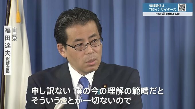 その後、福田総務会長は発言について釈明し「被害を生み出すような社会的に問題が指摘されている団体との関係が問題であることは言うまでもありません。それゆえに、自分としてはそのような団体との付き合いはしておりません」とのコメントを発表しました。