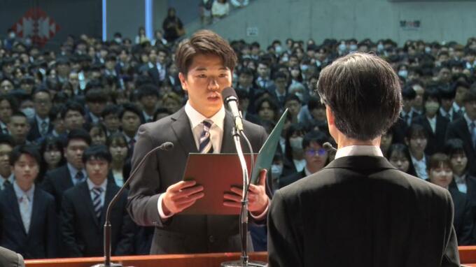 コロナ禍の収束で式典には家族らの出席も5年ぶりに認められ、新入生は学業に励むことを父母らに誓っていました。