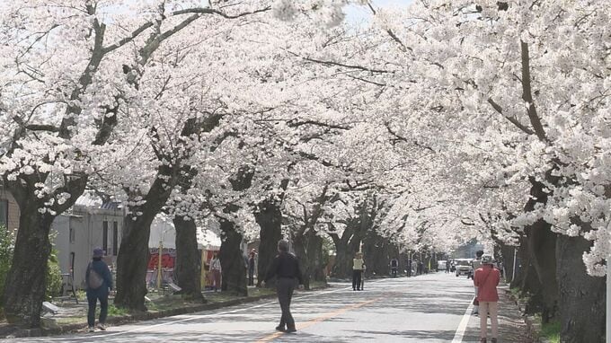 【中継・水津邦治アナウンサー】福島県富岡町のシンボル「夜の森の桜」は、4月1日からライトアップが始まりました。夜の森の桜の開花は去年よりおよそ半月遅く、ほぼ例年並みだということです。今いるのは、おとと…