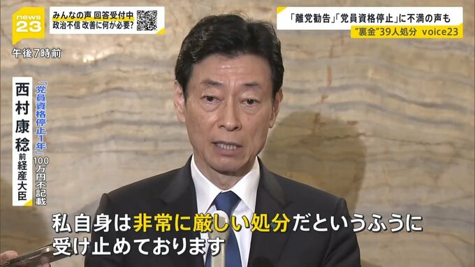 西村康稔 前経産大臣 「党員資格停止1年」100万円不記載