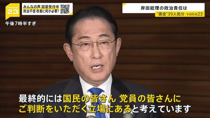 「私自身については、こうしたこの政治改革に向けた取り組みの進捗ですとか、取り組みぶり等をご覧いただいた上で、最終的には国民への皆さん、そして党員の皆さんにご判断をいただく立場にあると考えています」