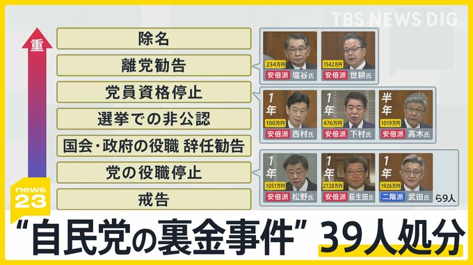 自民党の裏金事件をめぐり、政治資金収支報告書への不記載を認めていた自民党議員ら85人のうち、39人の処分が決まりました。「離党勧告」処分を受けた議員もいましたが、肝心の裏金の実態解明は進まず…。街では不…