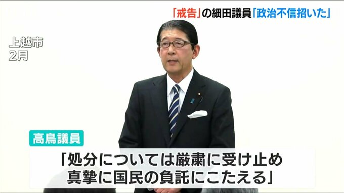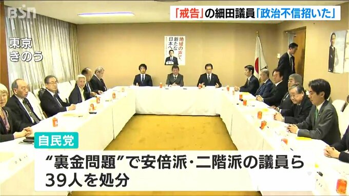 「裏金問題」で自民党は4日、安倍派と二階派の議員ら39人の処分を決定。新潟県関係では、収支報告書への不記載が500万円以上だった高鳥修一衆議院議員と細田議員の2人が「戒告」処分を受けました。