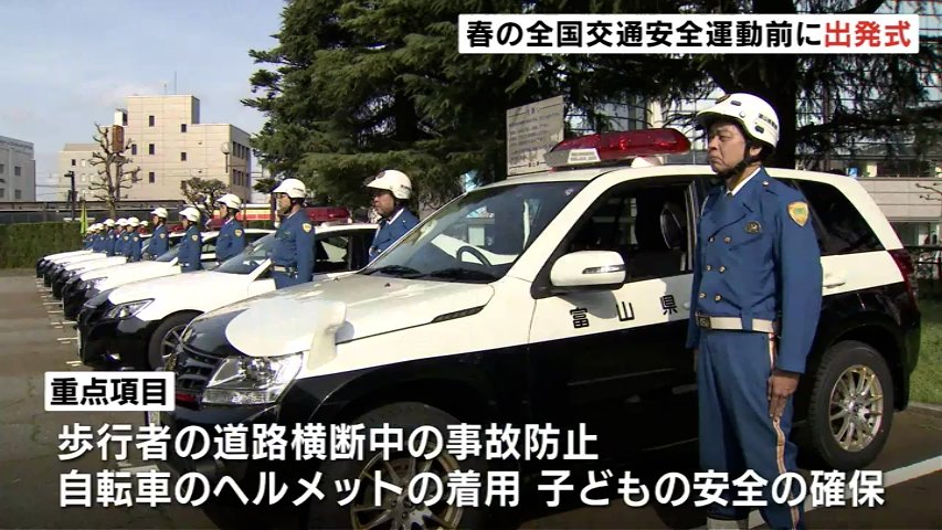 「春の全国交通安全運動」が6日から始まるのを前に富山県警察本部で出発式が行われました。