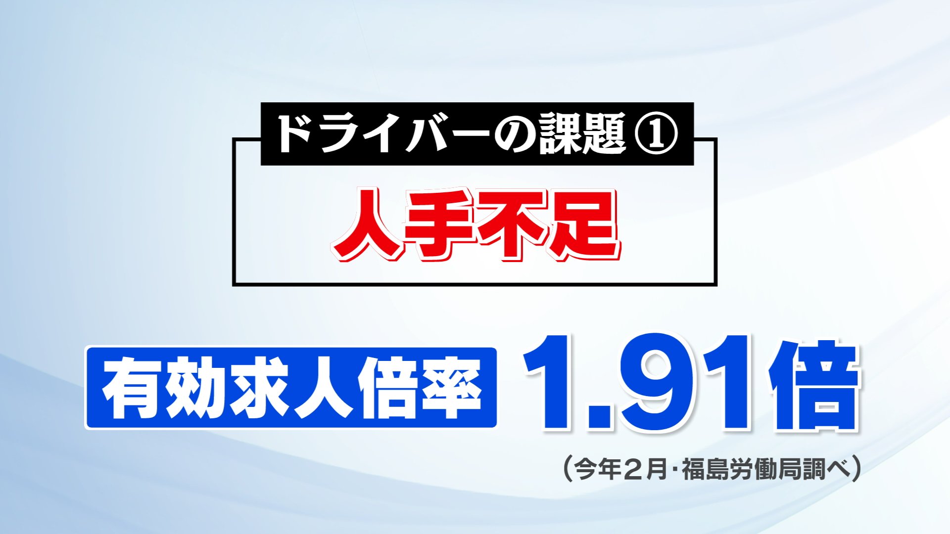 一方で、ドライバーの確保は今後も大きな課題となりそうです。福島労働局によりますと、ドライバーの有効求人倍率は、1.91倍。他のどの業種よりも高く、人手不足が深刻な状況です。