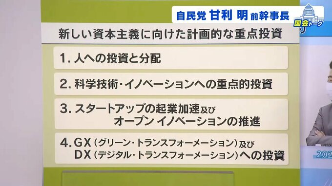 ーーやはり最後は財源、スタートアップ10兆円とか言われてますよ。それをどこから取るか、GXもDXもお金がかかるし、なおかつ防衛費をどうするかという話もあるし。(甘利さんは)自民党税制調査会の顧問でもありますよね。