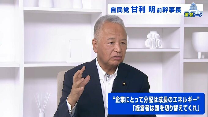 だから私は、経団連に行っても相当きついことを言います。従来は経団連が経済政策として一番信用する政治家・甘利明だったのですが、多分、今や一番煙たい政治家・甘利明になっているんですけど。私は必要なことを言っているのです。比べてみてください、世界中のトップ企業はいくら投資していますかと。ものすごい金額ですよ、内部留保はどんどん新しい成長に向けていると。内部留保は賃上げに向けている、内部留保はスキルアップに向けているじゃないか。日本だけ内部留保がそのまま積み上がっている。これを業界用語で“ブタ積み”って言いますよね。なんの役もしないでね、積んでいるだけ。だから積んでいるお金を働かせようということなのです。