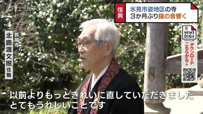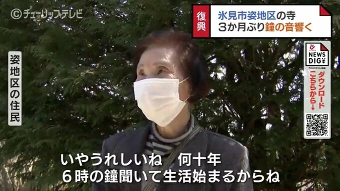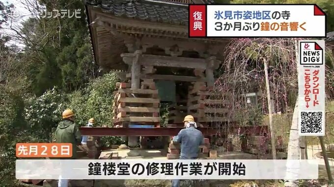 富山県氷見市姿地区に響きわたる鐘の音…。この地区にある長福寺の鐘が鳴るのは能登半島地震の発生以来、実に3か月ぶりです。
