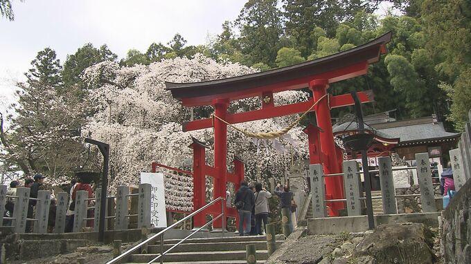 いわき市の小川諏訪神社では、いま樹齢650年を超える、市の天然記念物エドヒガンザクラ(シダレザクラ)が満開です。多くの花見客が訪れ、神社を参拝したり、サクラと一緒に写真を撮ったりして、本格的な春の訪れを感じていました。