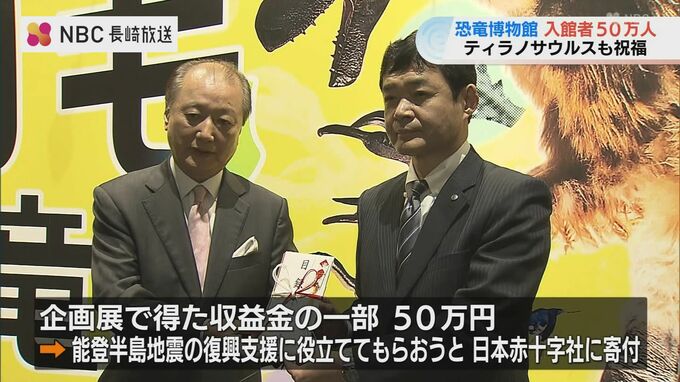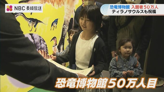 長崎市の恐竜博物館が5日、来館50万人を達成し、記念セレモニーが開かれました。