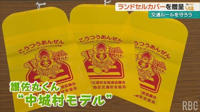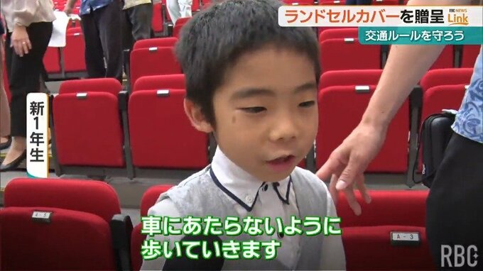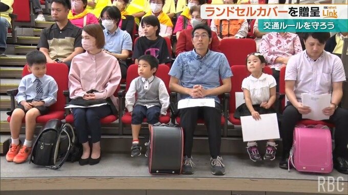 子どもたちを交通事故から守ろうと、小学校への入学を控えた新1年生にランドセルカバーが贈られました。