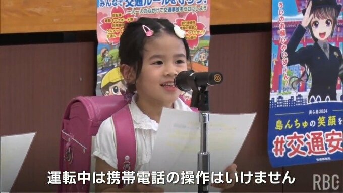 中城村で行われた春の全国交通安全運動の出発式に参加したのは、小学校の入学式を4日後に控えた新1年生3人です。