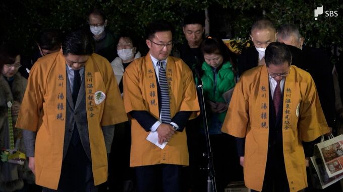 4月3日には台湾東部沖地震が発生。甚大な被害が発生していることを受け、点灯式の冒頭では、参加者が黙とうを捧げました。東伊豆町の岩井茂樹町長があいさつに立ち「この度の地震で、命を失われた方々へ哀悼の意と、そして、被害に遭われた皆様方へ心からお見舞いを申し上げ、また、一日も早い復旧と復興を心から祈念申し上げます」と話しました。