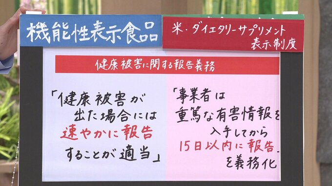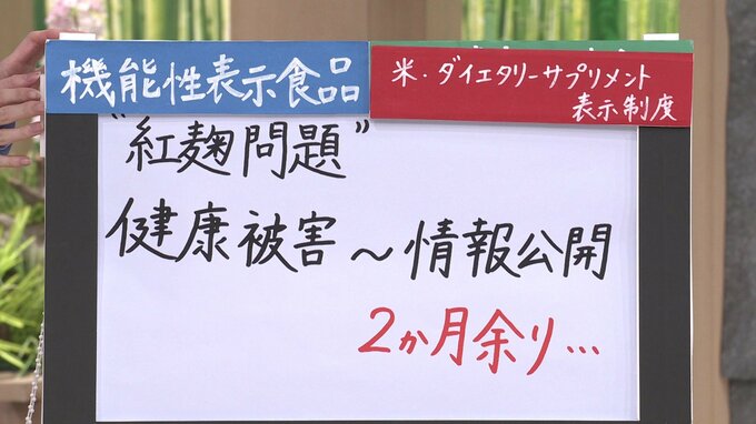 今回の“紅麹問題”は、最初の健康被害が把握されてから情報が公表されるまでに2か月余りかかっていて、被害を拡大させた可能性も指摘されています。市場が急拡大し、身近になった「機能性表示食品」ですが、いったん立ち止まって見直すべきところもあるようです。