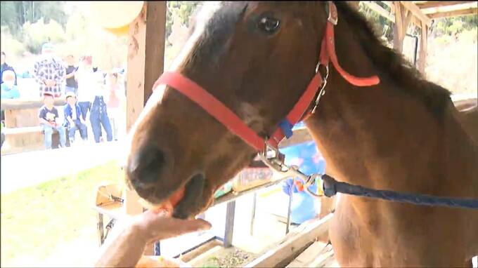 仙台市泉区の牧場で開かれたメスのポニー「ミント」の32歳の誕生会には、全国から家族連れなどが駆けつけました。