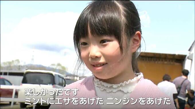 「楽しかった。ミントにエサをあげた。ニンジンをあげた」