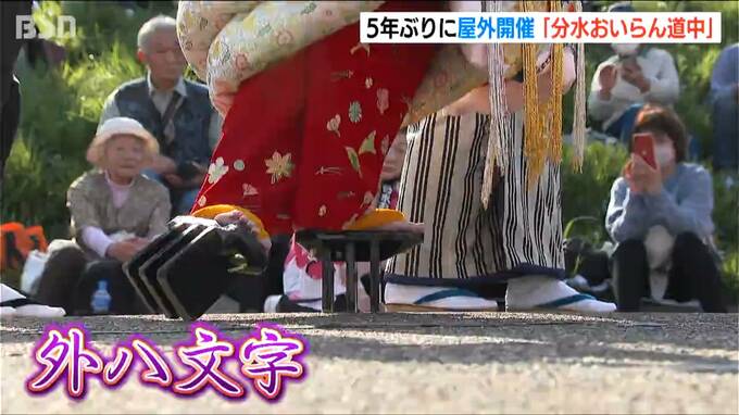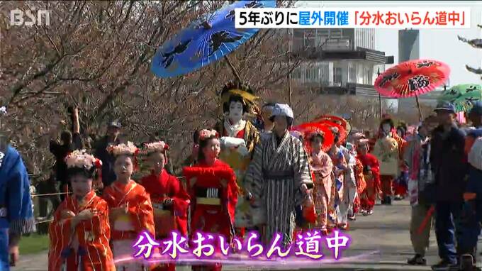青空のもとで開かれた『分水おいらん道中』は、ウイルス禍などの影響で、5年ぶりの屋外開催となりました。