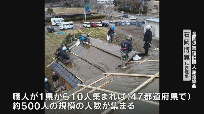 「職人が1県から10人集まれば(47都道府県で)約500人の規模の人数が集まる。2000棟の応急処置も夢ではないと思っている。そういう職人の集団をまとめ上げられるような協会・組織にしていきたい」